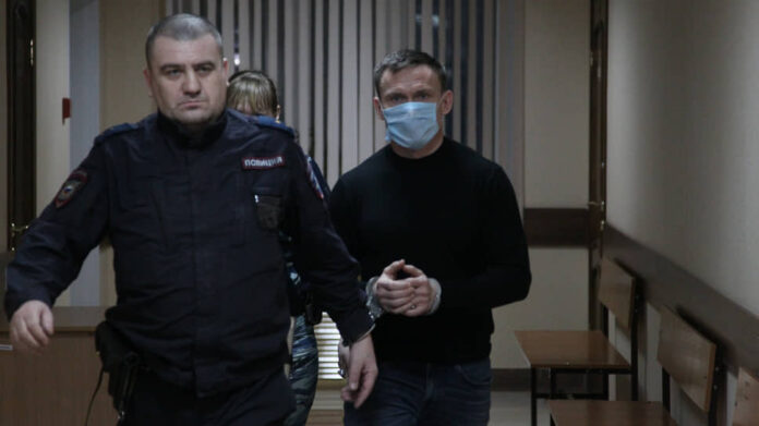 Директор НИУ РАНХиГС, депутат заксобрания Александр Парамонов (справа) перед избранием меры пресечения в Московском райсуде