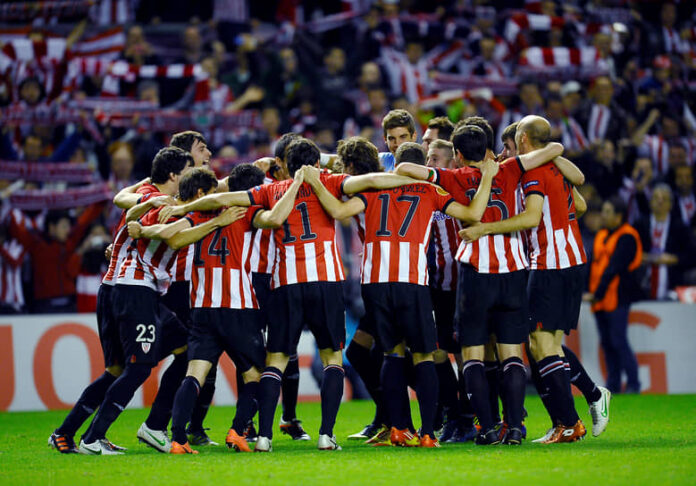 Футболисты «Атлетико» (Бильбао) празднуют выход в финал Лиги Европы, 26 апреля 2012 года