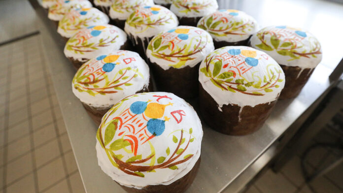 Выпечка, украшение и упаковка куличей в пекарне Свято-Троицкой Сергиевой Лавры.