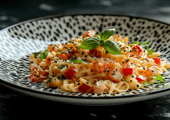 Подавайте немедленно, украсив сырной россыпью и веточкой рукколы. Помните: истинная карбонара — это танец яиц и сыра под дирижировкой точной температуры! Ранее мы делились рецептом сочной запеканки с курицей и овощами.