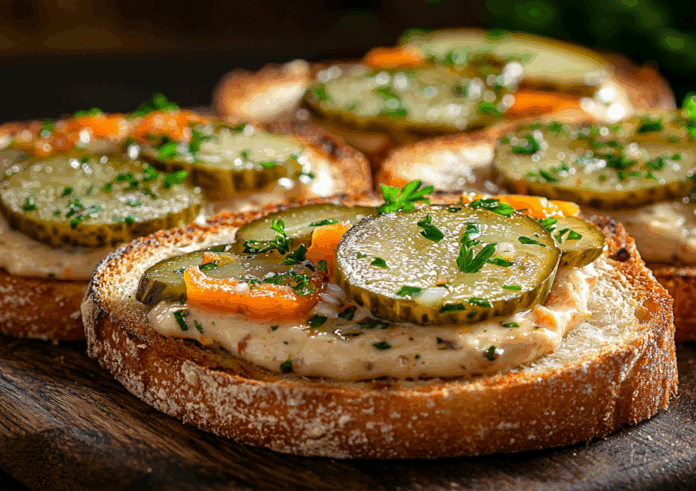 Хрустящие бутерброды с пикантной намазкой из соленых огурцов, карамелизованного лука и моркови — ваш идеальный перекус! Всего 5 минут — и вы наслаждаетесь сочной закуской с ярким вкусом. Ароматный багет, воздушная овощная смесь и тонкая кислинка маринованных огурцов создают гармонию в каждом кусочке. Идеально дополнит обед или станет вкусным спасением в спешке!