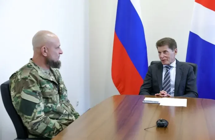 Олег Кожемяко предложил участнику спецоперации Дмитрию Дарманкову стать замглавы Партизанска Фото: Пресс-служба правительства Приморья