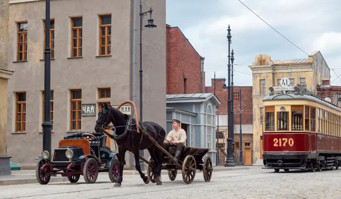 В кинопарке "Москино" стартовали съемки биографической саги о романтических отношениях Владимира Маяковского и Лили Брик. Для передачи эпохи на участке в 19 000 м² построены уникальные объекты: воссозданные жилые дома с аутентичными интерьерами, знаменитое здание Моссельпрома, заводские корпуса с башнями, автопарк и атмосферное кафе. Особое внимание привлекли проложенные по главной улице трамвайные рельсы, где курсируют подлинные ретро-вагоны.