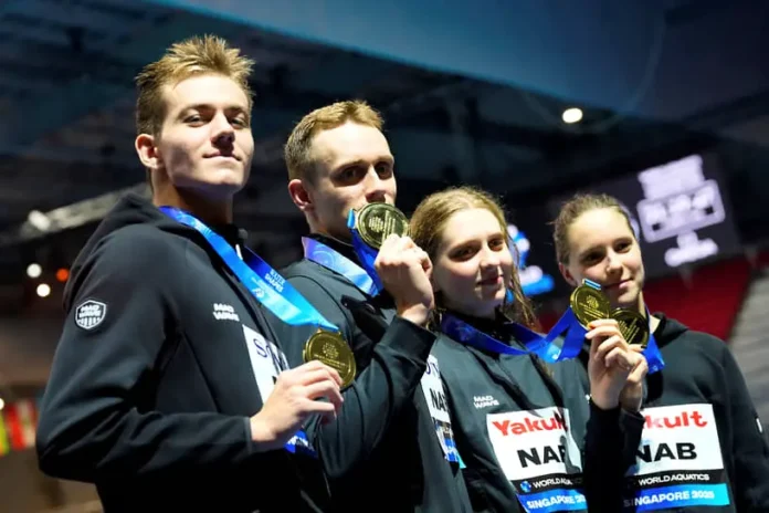 30 июля стал знаковым днем для российского плавания: на престижном чемпионате мира по водным видам спорта в Сингапуре наша команда совершила настоящий подвиг, навсегда вписав новые страницы в историю спорта. В комбинированной смешанной эстафете 4х100 метров российский квартет выступил безупречно. В состав победной эстафеты вошли спинист Мирон Лифинцев, блиставший на дистанции и недавно завоевавший серебро в индивидуальном заплыве, знаменитый брассист Кирилл Пригода, амбициозная баттерфляистка Дарья Клепикова и стремительная фристайлистка Дарья Трофимова.