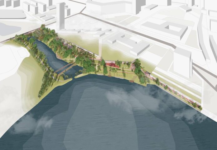 В этой локации появится новый пешеходный мост, смотровая площадка, теневой навес, будут установлены пирсы и создан сад фитонцидов. Особое внимание будет уделяться безопасности, в том числе установке системы видеонаблюдения.