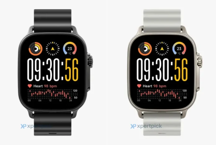 Первое, что обращает на себя внимание, — это узнаваемый корпус прямоугольной формы с закругленными краями и минималистичный стиль оформления, который безусловно ассоциируется с Apple Watch Ultra. Часы будут предложены в двух цветах: классическом черном и элегантном серебристом, что позволит подобрать модель под любой стиль и настроение.