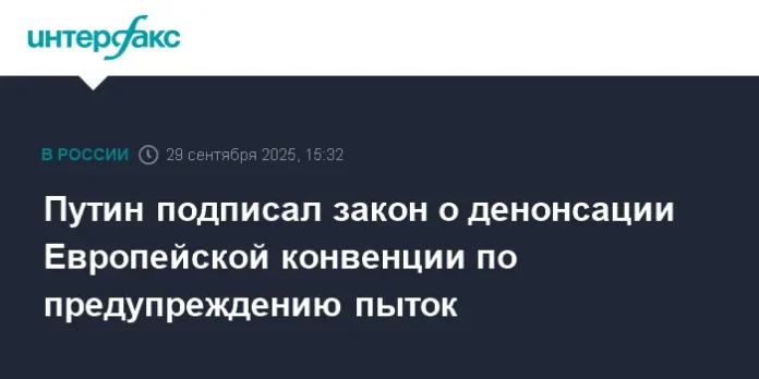 Президент Российской Федерации Владимир Путин официально подписал закон, согласно которому Россия прекращает свое участие в Европейской конвенции по предупреждению пыток и бесчеловечного или унижающего достоинство обращения либо наказания. Этот шаг также включает денонсацию первых двух протоколов к конвенции, к которым Россия присоединилась еще в конце 90-х годов.