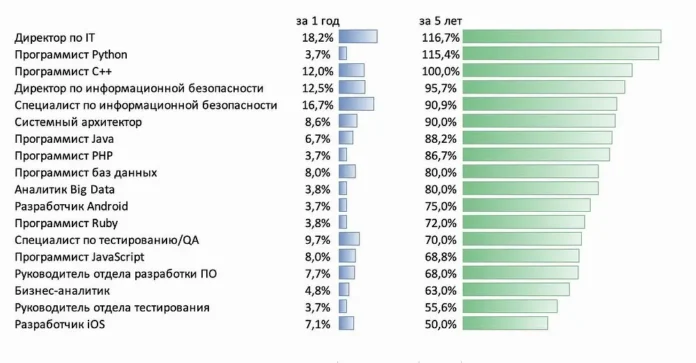 Директора по IT увеличили доход на 116,7%, директора по информационной безопасности – на 95,7%, руководители отделов разработки – на 68%, системные архитекторы – на 90%.