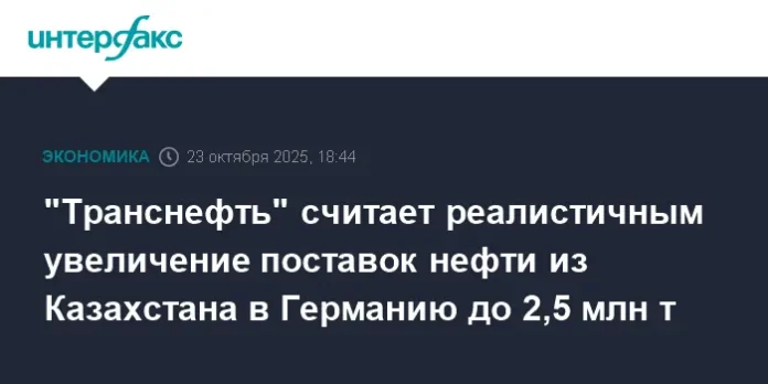 Компания «Транснефть» подтверждает реалистичность планов по увеличению экспорта казахстанской нефти в Германию до 2,5 млн тонн ежегодно.