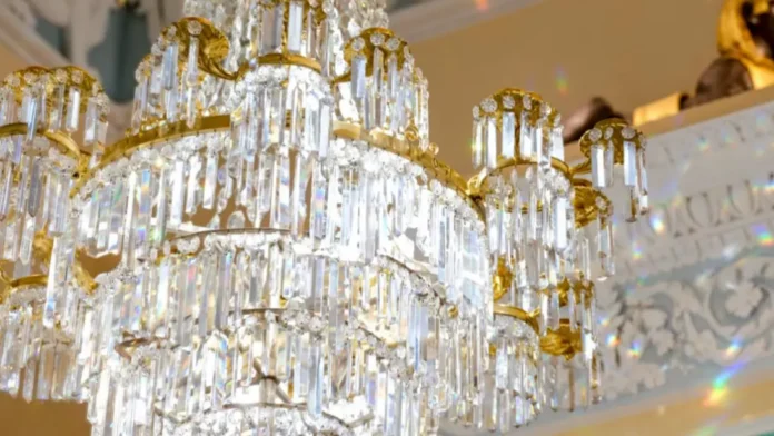Каждая из люстр – это настоящий шедевр: в них более двух тысяч хрустальных подвесок, сверкающих всеми оттенками света. Мастера не стремились к быстрой замене изношенной фурнитуры, а занимались кропотливым восстановлением оригинальных креплений, чтобы сохранить историческую аутентичность. После деликатной ручной очистки все металлические части были дополнительно обработаны особым защитным составом, чтобы уберечь их от воздействия времени на долгие годы.