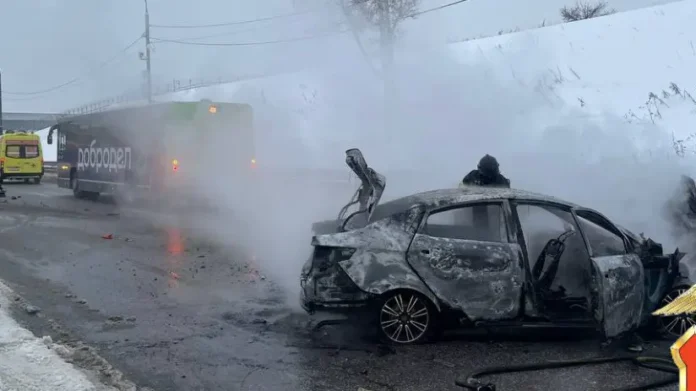 Подробности инцидента озвучили в официальном Telegram-канале ведомства: «Сегодня в 08:20 на 5-м километре Шереметьевского шоссе зафиксировано ДТП. По предварительным данным, водитель Kia совершил попутное столкновение с автобусом ЛиАЗ, после чего легковой автомобиль воспламенился».